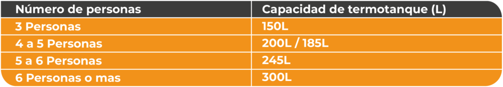 La capacidad de los equipos se determinan a través de las personas que habitan el domicilio, es decir, por persona contamos 45 lts de agua.